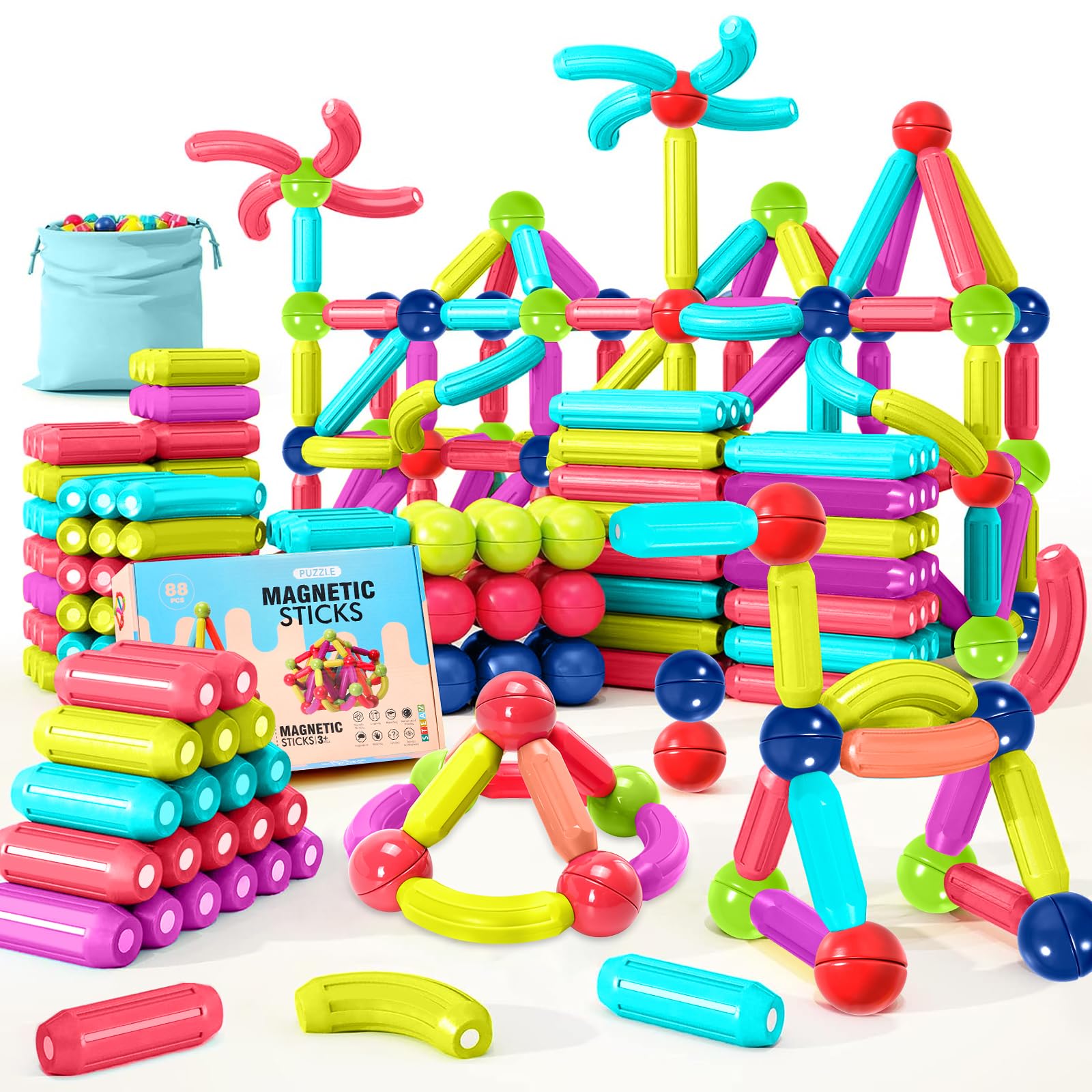 Construction Magnetique Enfant : Attrapeur de Magenthéliques 53 PCS | Jeu de Construction Magnétique pour Enfants 3-8 An
